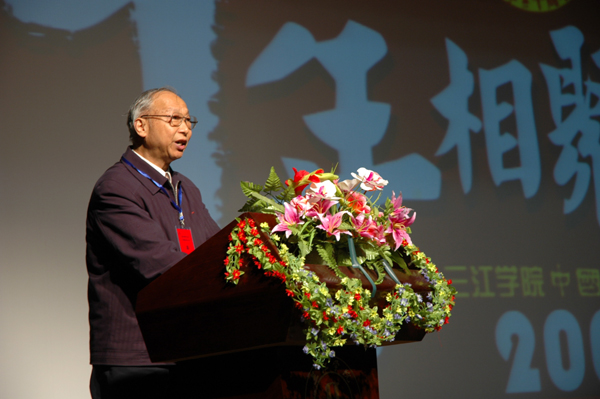 在上午举行的庆祝大会上,中文系系主任包忠文教授总结了建系十年来取得的成绩,阐述了中文系系科建设与发展的思路。毕业生代表许南欣同学(现为《解放日报》记者)介绍了自己在毕业后取得了不凡业绩,并向母校的培养表达了深深的谢意。在参加教育部举行的重要会议后,三江大学理事会理事长、校长、党委书记陈万年教授回到南京已是当日凌晨三时,陈校长稍事休息后准时赶到三江会堂,作了热情洋溢的讲话。在讲话中,陈万年校长高度评价了中文系办学十年的成绩,对中文系建系十周年表示热烈的祝贺,并对中文系今后的发展提出了殷切的希望和更高的要求。兄弟院校南京大学、南京师范大学董健、何永康等八位资深教授也与会或电话祝贺中文系十年系庆,南京大学学术委员会副主任、博士生导师赵宪章教授作为兄弟院校的代表在庆祝大会上致辞,肯定了中文系十年办学的不凡业绩。beat365英国官网网站原副院长丁承憼教授感慨万千,即兴赋诗一首,热烈庆祝中文系建系十周年并贺包忠文主任七十五岁寿辰。