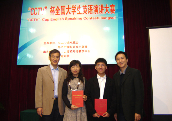 由中国中央电视台、外语教学与研究出版社共同举办的2007 “CCTV” 杯全国大学生英语演讲比赛(江苏赛区)于10月27、28日在东南大学举行半决赛和决赛。江苏赛区共有216名选手参加了预赛,64名进入复赛,即半决赛,18名选手进入决赛,最终产生一等奖6名,二等奖12名,三等奖20名,优胜奖26名。我系刘帅同学是入选复赛的唯一一名民办院校学生,他以半决赛第六的成绩进入决赛,最后获得了江苏赛区二等奖。