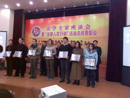 会议由南京市法制宣传教育领导小组办公室副主任、市司法局副局长王淑琴主持。会议分为两个阶段。第一阶段是交流法律人在行动活动经验做法及举行颁奖仪式,第二阶段是专家座谈会。各代表交流发言以及展示了其丰硕的法律人在行动的成果。专家发言非常精彩,博得在场所有开会人员的热烈掌声。