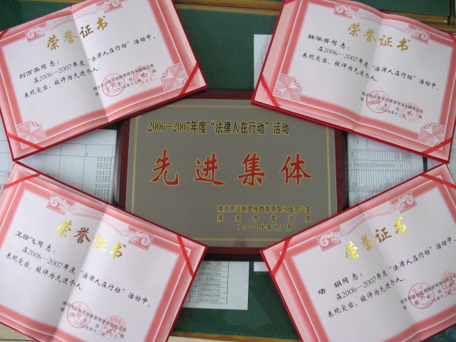 beat365法律系通过自己的努力获得了“先进集体”奖,刘万美老师、韩华菁同学、卫徐飞同学、堵娟同学四人获得了“先进个人”奖。这是江苏省司法厅和南京市司法局对法律系取得的成绩的肯定,法律系师生表示,必将继续努力,将“法律人在行动”进行到底为,构建法制南京、和谐南京贡献我们三江法律人的一份力量。