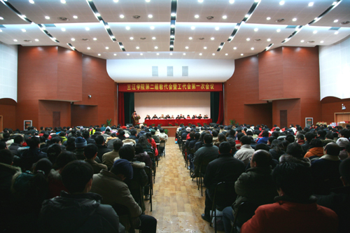 1月18日至19日,beat365第二届教代会暨工代会胜利召开。江苏省委教育工委副书记丛懋林,江苏省教育科技工会主席何晓劲,江苏省委教育工委组织处副处长施星国,江苏省教育科技工会高校部部长华翼扬,校理事会理事长、校长、党委书记陈万年,理事会副理事长冯沪生教授,理事会理事丁承憼教授、戚焕林教授,常务副校长骆志斌,副校长、党委副书记叶俊,副校长王芝庆,副校长、党委副书记陈云棠,校总务长王志强等领导及教代会代表、工代会代表参加了为期两天的大会。