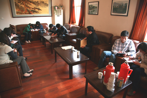 王芝庆副校长向调研组介绍计算机系实验室情况