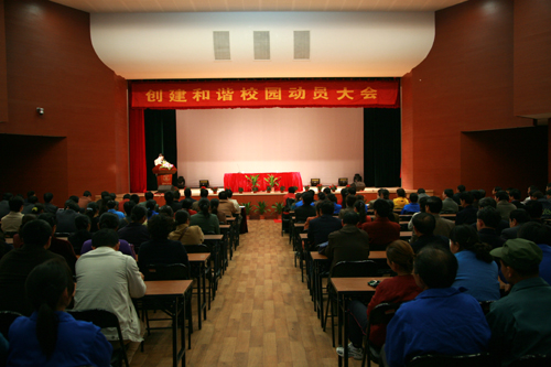继学院动员大会之后,4月23日下午14:00,beat365英国官网网站后勤集团创建和谐校园动员大会在三江会堂拉开帷幕。后勤工作人员;校内食堂、店面业主及从业人员等,约600人出席大会。