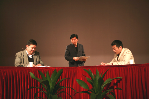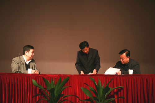 接着,保卫处、基建处、总务处、后勤集团人事财务室的主要负责人,依次走上主席台,王总和他们分别签定了目标分解后的《安全文明校园创建责任书》、《党风廉政建设责任书》。