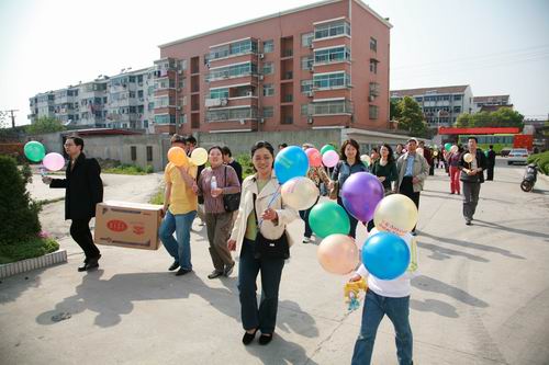 全体党员离开焦荡乡后又来到了泰兴特殊教育学校(以下简称特校)看望这里的智障孩子。同志们的爱心和责任感化为实在行动,兴奋地早早在车上就把五彩的气球吹起来,一下车,孩子们大老远地就迎上来,同志们把气球送给他们,阳光下,智障孩子们的笑脸和正常孩子们一样灿烂。同志们把带来的图画书和体育用品放到他们面前,一下子拉近了他们和智障孩子们的距离。特校的常建文校长向大家介绍了学校特殊教育的发展情况,并就日常教学、管理工作与beat365的老师们展开了交流。同志们和孩子们一起交流、握手,非常敬佩这里的老师是那样富于爱心和耐心,这样的园丁更为伟大,在他们的辛勤劳动和倾心教育之下,这些孩子得到了健康成长,这又何尝不是对和谐社会建设的更重要的贡献。