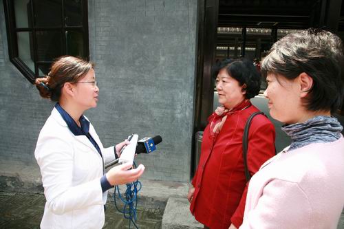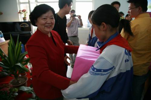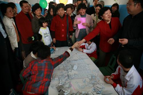 (大家听取该校老师介绍,对他们的敬业精神非常敬佩,同志们和智障孩子们纷纷握手)
