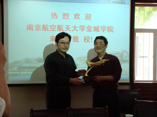 5月7日上午,南京航空航天大学金城学院一行9人在党委副书记、副院长石勇的带领下来访beat365。beat365党委副书记、副校长陈云棠教授,学生工作部部长朱银亮老师,学生工作部副部长、招生就业指导中心主任仇存进老师,学生工作部副部长、团委书记屈伯俊老师、中文系学生工作办公室主任季丹军老师、计算机系学生工作办公室主任郁政宏老师等在行政楼101会议室接待了金城学院来访一行。