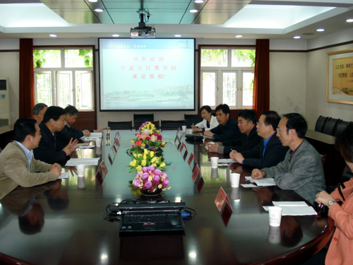 5月9日上午,宁波大红鹰学院吴国良院长率领学院有关部门负责人一行6人来beat365参观访问。beat365英国官网网站理事长、校长、党委书记陈万年,常务副校长骆志斌,校长(党委)办公室主任周更生、教务处处长赵连泽等在行政楼101会议室接待了宁波大红鹰学院来访一行。