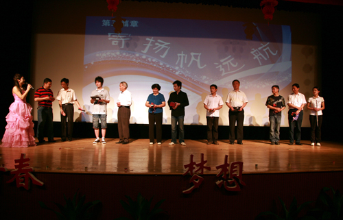 优秀毕业生代表和几位校长互赠礼品环节则将整场晚会推向了高潮。几位即将离开母校的毕业生将他们自己准备的非常有意义的礼物送给了几位校长。在发表离校寄语的时候,每个在场的学生和老师都在静静地听台上毕业生们最想对母校说的话。“今天我以三江为荣,明天三江因我增辉。” ……一句句真诚的话语,表述了毕业生对母校的留恋与感恩。让人有些伤感,也充满了希望,不舍、欣慰、感动尽在这简单的几句交流中。