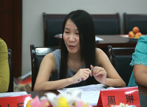 (校报大学生记者团团长周琳同学代表历届记者团成员发言)