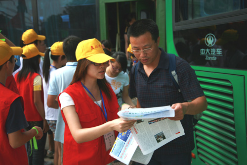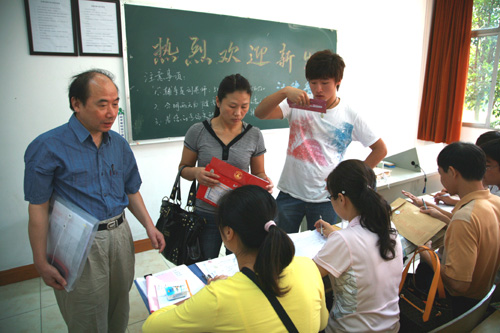 三江志愿者们为新生及家长提供热心而周到的服务 摄影/张正君