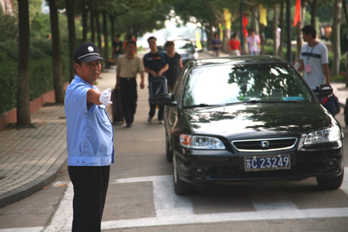 指挥交通的后勤人员