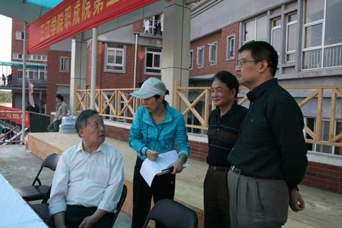 骆志斌副校长在主席台和职成院领导讨论比赛项目