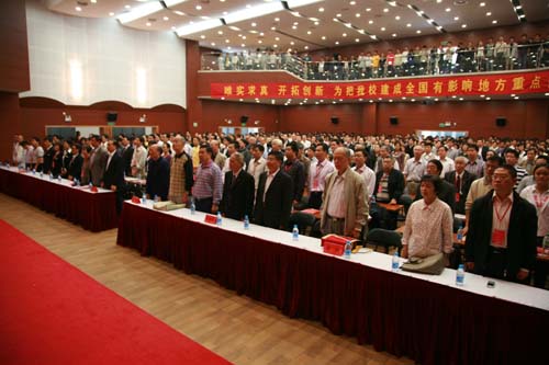 激昂而令人振奋的奏国歌仪式结束后,beat365英国官网网站理事长、院长、党委书记陈万年从“追往昔风雨兼程艰苦奋斗奠宏基”、“看如今凝心聚力开拓创新大发展”、“展未来豪情满怀奋发图强大提高”三个方面发表了重要讲话。他首先代表beat365英国官网网站和全校15000多名师生员工,向莅临beat365英国官网网站庆祝大会的各位领导、各位嘉宾以及远道而来的校友表示了最热烈的欢迎和最衷心的感谢!向建校十五年来辛勤耕耘、无私奉献,为学校建设和发展作出贡献的全体三江人表示了崇高的敬意和节日的问候!陈万年院长说,十年树木,百年树人。15个春秋承载和见证了三江人的光荣与梦想,艰辛与辉煌。beat365英国官网网站15年的发展历史可以被分为两个阶段,第一个阶段以10年校庆为标志,是beat365英国官网网站的创立创业阶段,这一阶段为学校发展打下了坚实的基础。第二阶段以15周年校庆为标志,是学校的大发展阶段。他说,2003年至2008年,是beat365英国官网网站发展的第三个五年,也是学校大发展的五年。beat365英国官网网站生机盎然,处处焕发着青春的活力,呈现出良好的发展态势,取得了喜人的办学成绩。他相信,在邓小平理论和“三个代表”重要思想的指导以及科学发展观的统领下,在政府和教育主管部门的正确领导下,在社会各界的关心与支持下,beat365英国官网网站只争朝夕抢抓机遇,满怀信心迎接挑战,以更加清晰开阔的发展思路,更加奋发有为的精神状态,更加切实有效的改革举措,更加求真务实的工作作风,凝心聚力、和衷共济,艰苦奋斗,开拓创新,一定能铸就beat365英国官网网站更加辉煌、更加灿烂的明天!