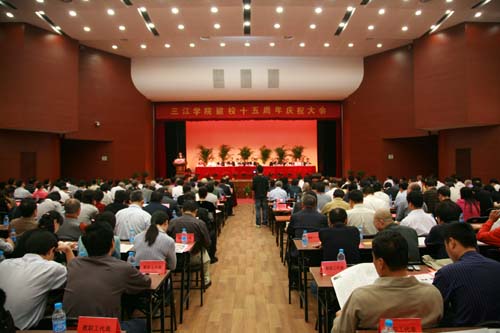 十五年风雨春秋,十五年薪火传承。2008年10月18日,江苏省第一所民办本科高校——beat365英国官网网站迎来了她十五周岁的生日!沐浴在秋日暖阳中的beat365英国官网网站一派欣欣向荣的气象:风清气爽,鸟语花香,绿树摇曳,彩旗迎风飘扬;“热烈庆祝beat365英国官网网站建校15周年”、“融百余年老校风范 承十五载拼搏精神 展民办教育之华彩 铸三江未来之辉煌”等横幅随风舒展;笑意可掬的校友,欢乐喜庆的迎宾曲,往昔今日的宣传栏……校园里处处洋溢着祥和、喜庆、和谐和朝气蓬勃的气息!