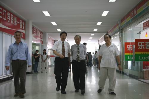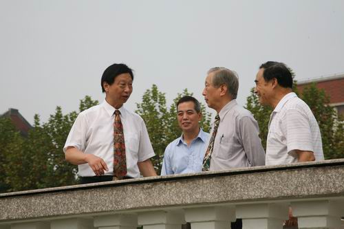 (陈万年校长、旅游学院院长、旅游资源开发研究所所长郑云波教授陪同孙震先生参观校园)