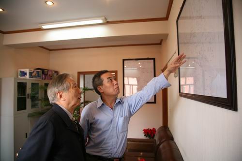 (旅游资源研究所的许盘清老师向孙震先生介绍古地图)