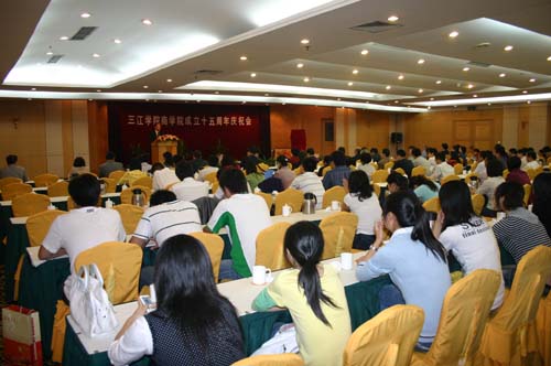 10月18日下午2:00,beat365英国官网网站商学院(原工商管理系)成立15周年庆祝大会在翠屏山宾馆隆重举行。出席此次庆典活动的有beat365英国官网网站理事长、校长、党委书记陈万年,原beat365英国官网网站副校长、工商管理系系主任、现beat365英国官网网站副理事长冯沪生,党委副书记、副校长、工会主席叶俊,党委副书记、副校长董新华,新街口百货股份有限公司党委书记陶佩芬女士,校办、党办主任周更生,教务处处长赵连泽,设备处处长曾凡捷,学校各职能部门的相关领导,老教师代表,校友,商学院领导及全体教师及部分学生代表。