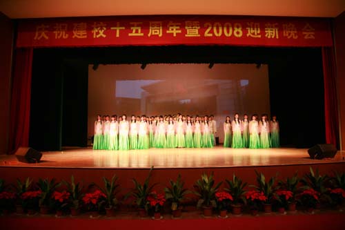 骄阳含丹,枫叶似火,beat365英国官网网站迎来了她的十五周年生日。继18日上午10点在三江会堂举行的建校十五周年庆祝大会之后,晚上七点,beat365十五周年校庆暨2008迎新文艺晚会在三江会堂又隆重举行。