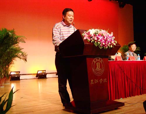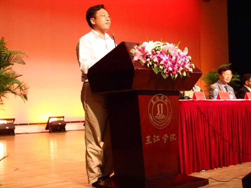 庆典的序幕在庄严激昂的奏国歌仪式下拉开了。大会首先由王芝庆教授发表庆典致辞,总结了我院过去十五年中所获得的各种成绩,对未来的展望以及对在校学生的期望。接着由印度NIIT驻中国总裁Kamal先生致辞,我院计算机科学与技术专业、软件工程专业与NIIT从2006年开始合作,其间获得了不少优异的成绩,在致辞中他对我院在江苏省首届大学生程序设计竞赛中获得第一名的成绩表示祝贺并给予了充分的肯定,并希望与我院长期建立合作关系,共创佳绩。致辞后,15位获得NIIT奖学金的同学以及在江苏省首届大学生程序设计竞赛中获奖的同学和指导老师一一上台领奖,将院庆大会推向了高潮。