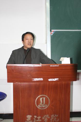 顾永芝教授发表热情洋溢的讲话,他说,在这大喜的时刻感到特别高兴:一、成立学院是全体师生早就向往的事情,在此之前,策划系制定了三年发展规划,计划2010年成立学院,现在提前到2008年,发展很快,所以特别高兴。二、学校聘请了南京大学国家文化产业研究所所长、博士生导师顾江担任学院院长,感到特别高兴。他同时感谢学校各级领导对策划系的大力支持和全方位的帮助;感谢顾江老师来帮助三江事业的发展;感谢全体师生对我个人无微不至的关心。他坚信,学院在顾江院长的领导下,一定更加团结一致,更好更快地发展,一定会取得更加辉煌的成绩。