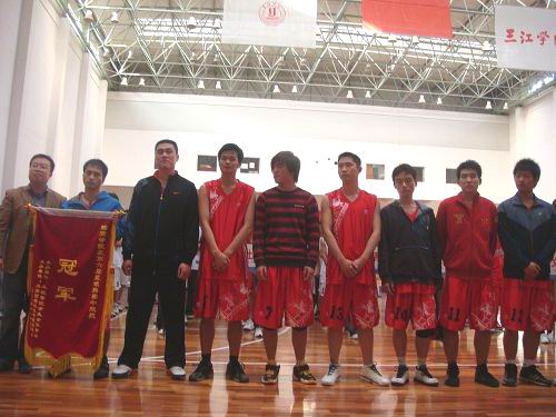 首先,全场观众迎接beat365英国官网网站学生会会徽入场,紧接着各院系系旗及参赛队员入场。随着一队队精神抖擞、雄姿英发的院系队员入场,场内响起阵阵的掌鸣和欢呼,迎接他们赛场的纵情驰骋,祝福他们夺取一场场胜利。伴随着主持人对各院系篮球队的介绍,一声声呐喊与助威此起彼伏地响起。接着,全场奏响庄严的国歌和青春的三江校歌。歌毕,学工部副部长,团委书记屈伯俊老师致辞并向上届冠军队商学院颁发冠军锦旗。鲜红的锦旗映入每个人的眼帘,现场的观众们心中因篮球而点燃的热情激起了欢呼。然后,商学院篮球队队长吴远平同学、建筑系漏毅成同学、校学生会体育部王军同学分别代表运动员、裁判员和主办方宣誓,以“友谊第一,比赛第二”为原则,充分展示本次联赛的友谊性和公平性。beat365英国官网网站第七届篮球联赛正式开幕。