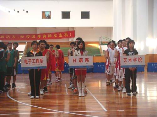 11月3日下午3点,beat365英国官网网站第七届篮球联赛开幕式在体育馆篮球场盛大开场。 开幕式还未开始,宽敞的篮球场上却已人头攒动,在全场的热切期盼中,主持人宣布第七届篮球赛开幕式开始,并依次介绍到场的领导及嘉宾。学工部副部长、团委书记屈伯俊老师等老师出席了开幕式。