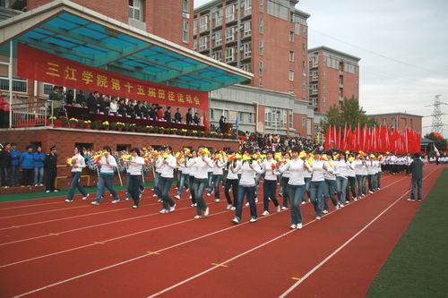 11月8至9日,beat365第十五届田径运动会在田径场举行, 8日上午8点,运动会开幕式正式开始,陈云棠副校长主持开幕式,国旗队、校旗队、红旗队、鲜花队方阵以及各院(系)运动员方阵陆续入场,运动场洋溢着欢快、喜庆的气氛。8点30分,全体师生面向国旗庄严举行升旗仪式。董新华副校长致开幕辞,他在开幕辞中说:“今年我国成功举办了第29届奥林匹克运动会,在北京奥运会上,我们看到了奥运健儿奋勇争先,顽强拼搏,挑战生命极限的精彩。在这金风送爽、硕果累累的秋天,我们刚刚举行了15周年校庆,今天又满怀喜悦地迎来了第15届田径运动会的隆重开幕。请允许我代表本届大会组委会,对运动会的顺利召开表示热烈的祝贺!对为本次体育盛会的筹备工作付出辛勤劳动的老师们、同学们表示衷心的感谢!”,他指出:“学校体育是全面发展教育的重要组成部分,发展体育运动,有利于增强师生体质,促进师生身心健康发展,也是我们每个人学习科学文化知识、进行社会实践和完成工作任务的有力保证。运动会的举办,既是对beat365同学们的体育运动水平和体育运动成绩进行一次大检阅,也是全校师生道德品质、思想作风、精神面貌和校风校纪的一次大展示。运动会的举办,必将进一步促进学校群众性体育活动的开展,推动教育部“阳光体育”工程的实施,激励师生积极锻炼身体,提升学校体育工作的水平。”