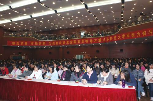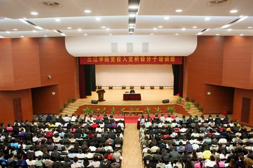 11月16日晚,beat365英国官网网站第十九期入党积极分子培训班在三江会堂开讲。副校长、党委副书记、党校校长董新华进行动员并主讲了此次培训的第一课,近1300名入党积极分子参加培训。党校办公室秘书许晓老师首先公布了此次党校培训的任务:五次理论课学习,三次观看录像、一次讨论。并对参加党校的同学提出了严格要求。