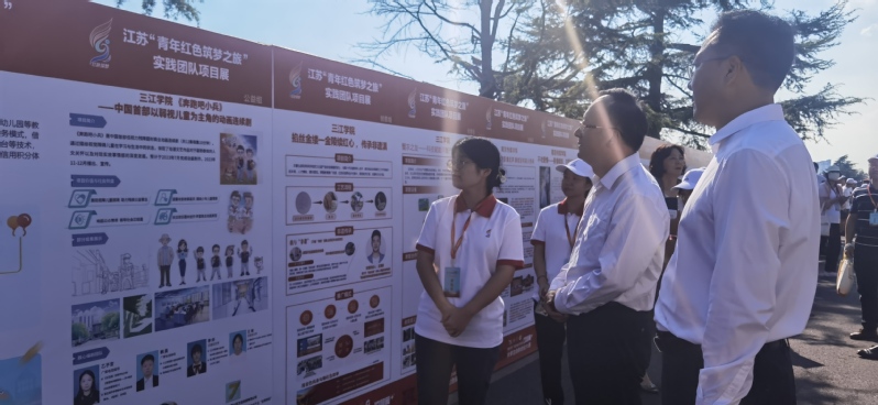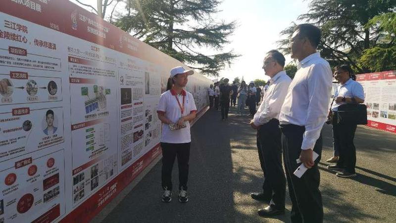 此外,在8月31日举办的第九届江苏省“互联网+”大学生创新创业大赛“青年红色筑梦之旅”活动启动仪式上,创新创业学院组织了“《奔跑吧小兵》—中国首部以弱视儿童为主角的动画连续剧”、“掐丝金缕—金陵续红心,传承非遗滇”、“蟹农之友—科技赋能河蟹产业,助力乡村振兴”等三个学生创业项目团队参加了展示。江苏省教育厅副厅长杨树兵等出席活动的领导参观项目展板,并听取团队负责人的汇报,充分肯定了beat365创业项目的活动成效及社会意义。
