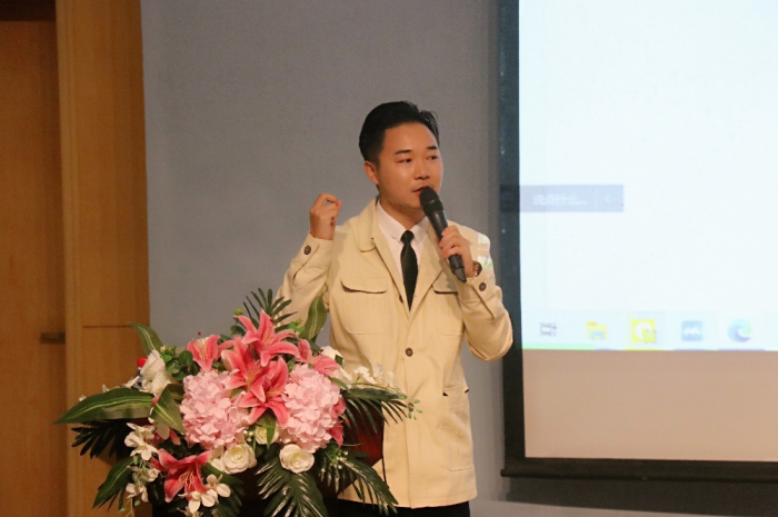 紧接着,子涵老师用几个"时代"为背景讲述了自己的进步轨迹——追逐、认识、浑噩、光明、崛起、创业、收获。警醒同学们在创业的过程中,艰辛和曲折是不可避免的,但找到自己喜欢的,并且坚持地并为之探索,直到发现新的机遇,而在历经了迷茫、浑噩、艰难后,熬过去,将会迎来光明!