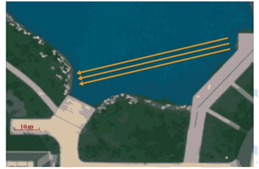 竞速赛是整场比赛的第二部分,将于戴安娜湖进行,场地图示如图4。竞速赛为分组进行模式,每次由三艘装有不同频率遥控器的龙舟同时进行。比赛组别与顺序由选手当场抽签决定。