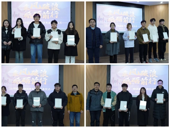 随后,法商学院党总支副书记陈荣桂、计算机科学与工程学院副院长吴德、机械与电气工程学院副院长徐智以及学生发展与服务中心就业指导科科长周欢欢分别为学员们颁发结业证书并合影留念。这一刻,不仅是对学员们学习成果的认可,更是对他们未来创业之路的鼓励与祝福。创业导师、天使投资人郑紫阳先生为优秀路演项目颁发“最佳路演”荣誉证书。他对学员们的路演表现给予高度评价,并表示这些项目具有很大的市场潜力和发展前景。他鼓励学员们继续深化项目研究,加强市场推广,将创业梦想变为现实。