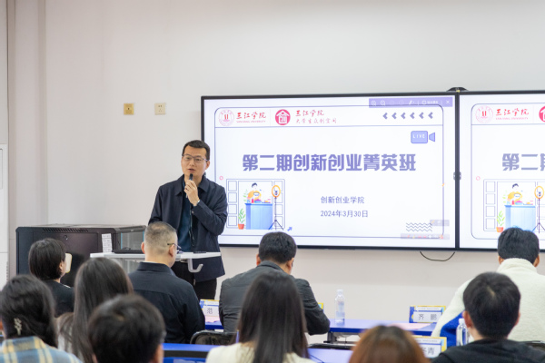 开班仪式上,创新创业学院副院长齐鹏向各位领导、专家以及全体菁英班学员表示热烈欢迎。齐鹏副院长指出,学院通过创新创业菁英班的平台,旨在通过整合资源、优化课程、增强体验等方式,为学员们提供良好的学习环境和成长空间。希望菁英班的学员们怀揣梦想,积极投创新创业实践,用实际行动书写着属于自己的精彩篇章。他表示,本期菁英班聚焦在电商直播方向,作为新兴的商业形态,电商直播正以其独特的魅力和巨大的市场潜力改变着传统商业模式,成为商业发展的新引擎。他希望学员们能够珍惜这次难得的学习机会,深入了解电商直播的运营模式和核心技能,掌握市场趋势和消费者需求,为未来的创业之路打下坚实的基础。