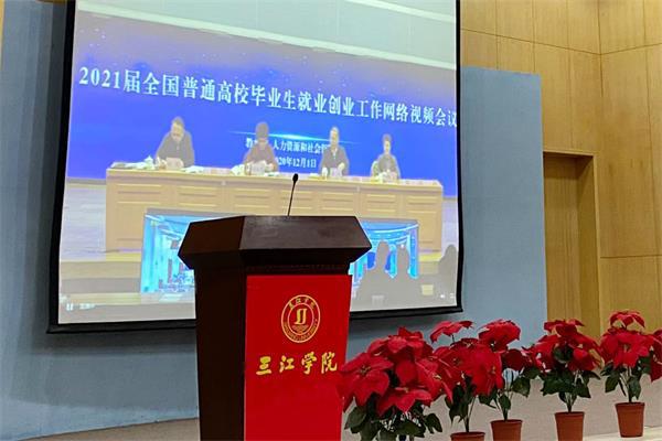 beat365在学术报告厅设立分会场,校长吴中江,党委常务副书记、副校长周更生,副校长王芳,各二级学院主要负责人、学工书记(副书记)、招生就业中心全体人员,教务处、创新创业学院负责人以及各学院就业管理员、2021届毕业班全体辅导员参加了会议。
