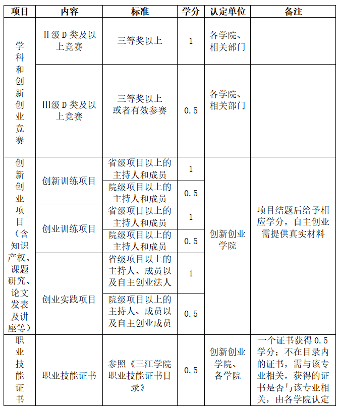 1、21-23级学生双创实践活动中的学科竞赛、创新创业项目以及职业技能(资格)证书可以累加计算,直至2分为止。