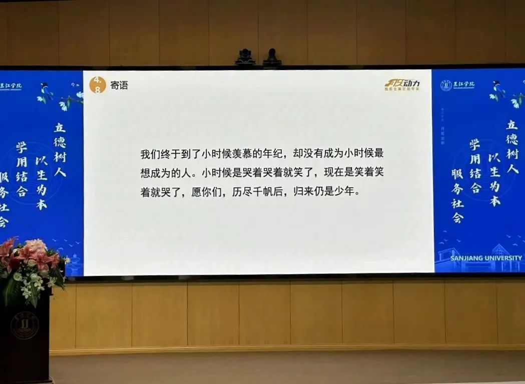 讲座结束时,郜铖老师送给学生们两句话及一段寄语,指导同学们投身创业实践。