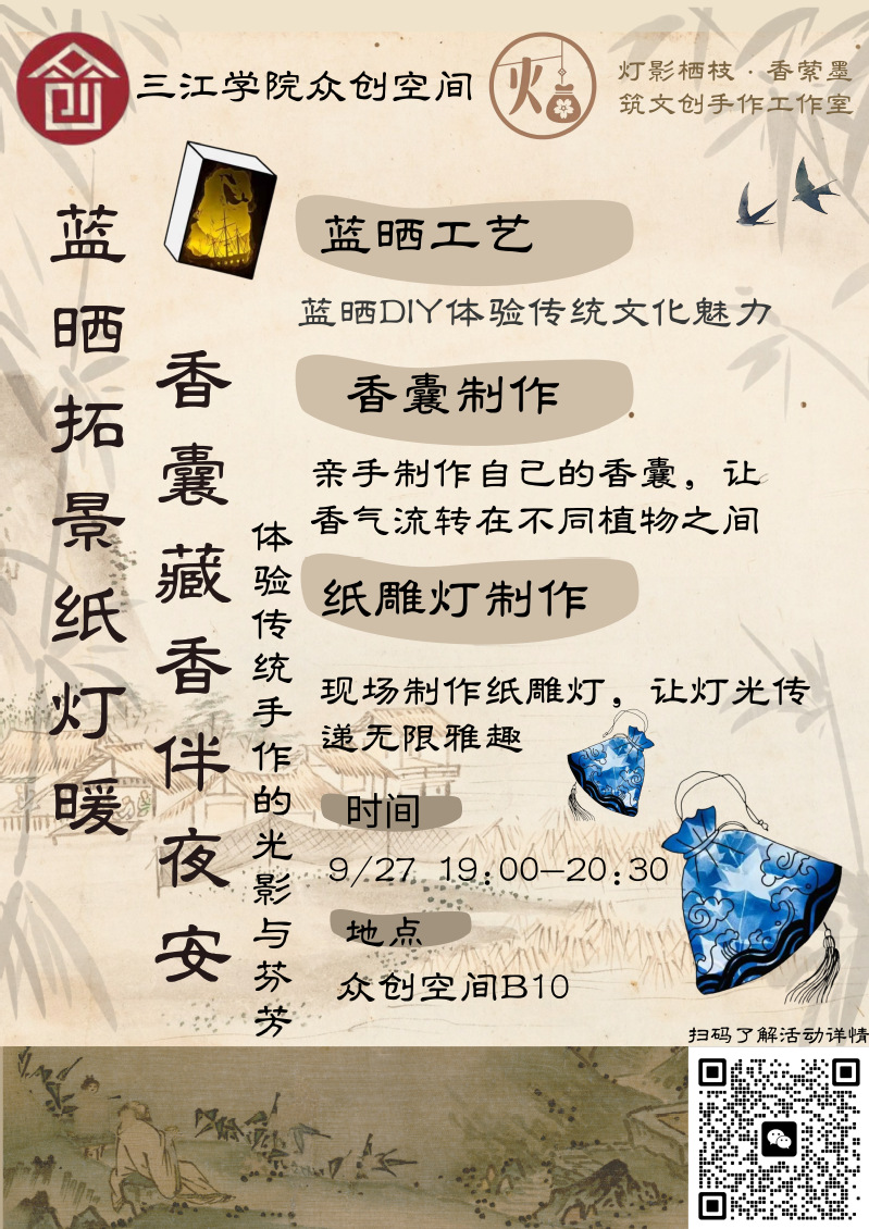 现在,机会就在眼前!本期创客工坊将引导大家走进纸雕灯与香囊的艺术世界,通过亲手实践,创造属于自己的温暖与美好。
