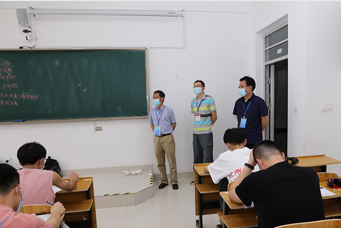 考试期间,李震、黄友锐深入考场巡视指导工作,检查考试各项环节,督查考风考纪。蚌埠市教育招生考试院朱琼主任对必赢官网考试工作进行了检查和指导,对学校此次考试的考场设置、考风考纪、疫情防控等各项工作给予充分肯定。