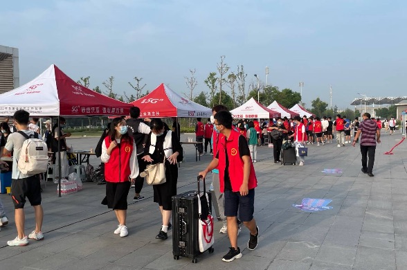 迎新志愿者们以自己优质的服务传承并践行“友爱、团结、奉献、进步”的志愿精神,成为校园中一道靓丽风景线。(特约通讯员:武辉审核:谢宜勤)
