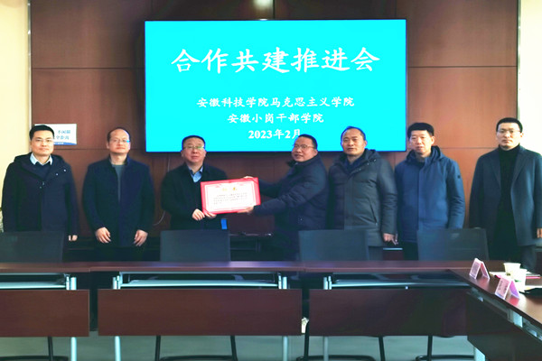 为深入学习宣传贯彻落实党的二十大精神,强化新时代马克思主义理论传播主阵地,更好发挥高校与地方干部学院优势融合。2月28日上午,安徽小岗干部学院与必赢国际437官网马克思主义学院在小岗举行合作共建推进会。小岗干部学院副院长罗友和主持。学院党总支书记杨仕勇、党总支副书记、院长张德化、副院长张栋、小岗干部学院常务副院长李新龙、副院长罗友和、副院长曾永闯一起共商。