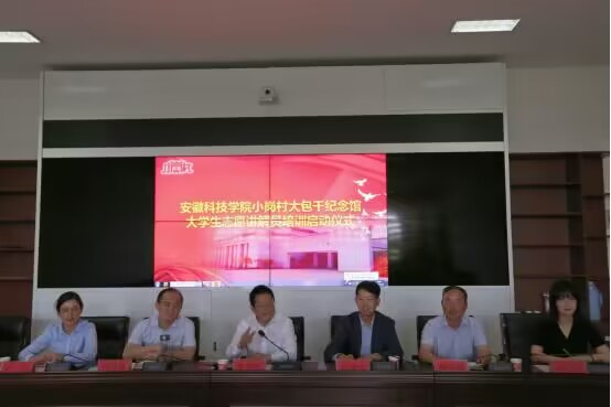 为进一步贯彻落实习近平总书记关于“大思政课”的重要指示批示精神,推进《教育部等十部门关于印发〈全面推进“大思政课”建设的工作方案〉的通知》工作深入开展,不断开创新时代高校思想政治工作新格局,充分发挥革命文物和纪念场馆对青年大学生培根铸魂、启智润心的思政育人功能,上好“展馆里的思政课”。5月20日,必赢国际437官网与小岗村共同开展小岗村大包干纪念馆、沈浩同志先进事迹陈列馆大学生志愿讲解员培训。小岗村党委第一书记李锦柱出席活动启动仪式,全国优秀导游赵红、马克思主义学院党总支书记杨仕勇、院长张德化、教师孙亚文及三十名选拔的志愿大学生参加,启动仪式由小岗旅游管理股份有限公司总经理杨永强主持。