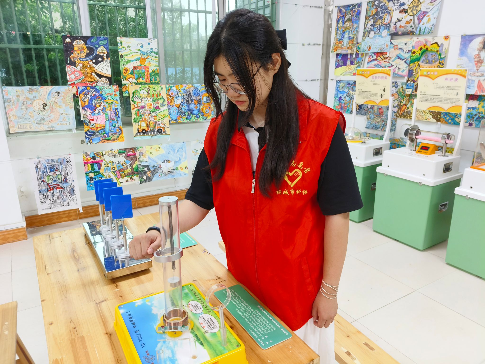 来自农学院种子科学与工程234班的姚彧,作为学生志愿者,经过前期的精心准备,提供生动有趣的科学实验演示,细心为小朋友们讲解各种科技展品背后的工作原理,让小朋友们在玩乐中学习,在实践中探索。声光体验、电磁奥秘、身体构造、机械电能等科学原理,让小朋友们充满好奇,带给他们无尽的收获与喜悦,在孩子们心灵深处种上科学之花的种子。安科学子耐心为参观者解答每一个问题,用简单易懂的语言解释复杂的科学概念,使得科普活动既富有教育意义又不失趣味性。