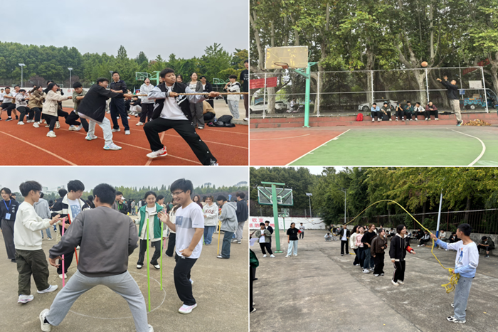 开幕式后,趣味类比赛便紧锣密鼓地开展起来。拔河比赛中,双方队员紧握绳索,满脸涨红,奋力后拉,呐喊声震耳欲聋;跳大绳处,绳子在空中划出优美的弧线,队员们一起跳起,节奏整齐。时至中午,趣味类比赛在同学们的默契配合、欢声笑语中圆满结束。