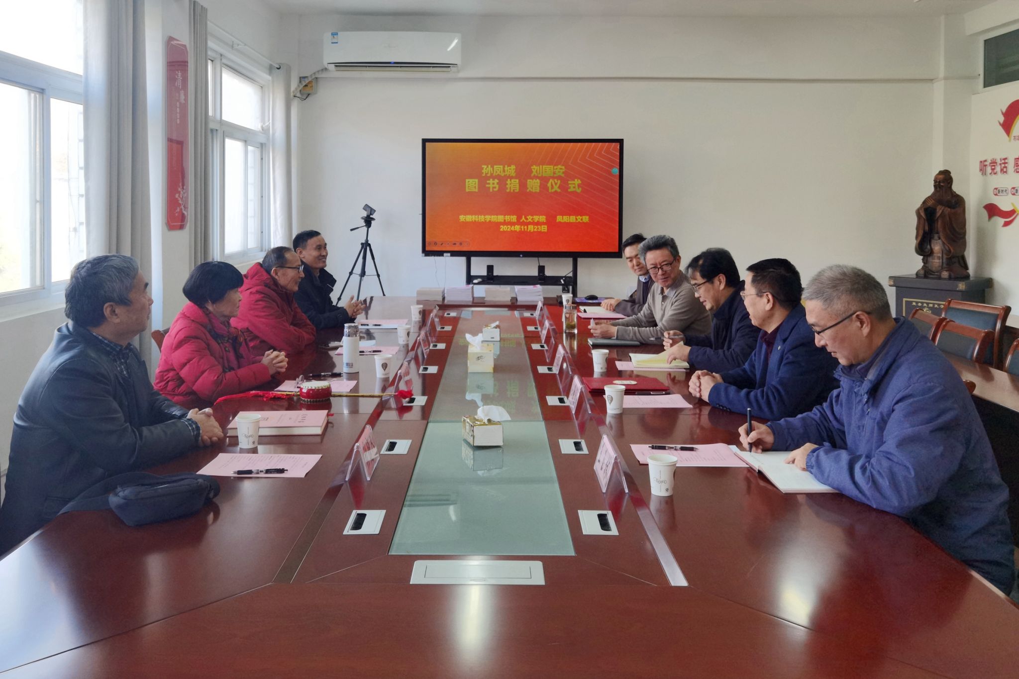 国家级非物质文化遗产项目(凤阳花鼓)代表性传人孙凤城夫妇来校举行图书捐赠仪式
