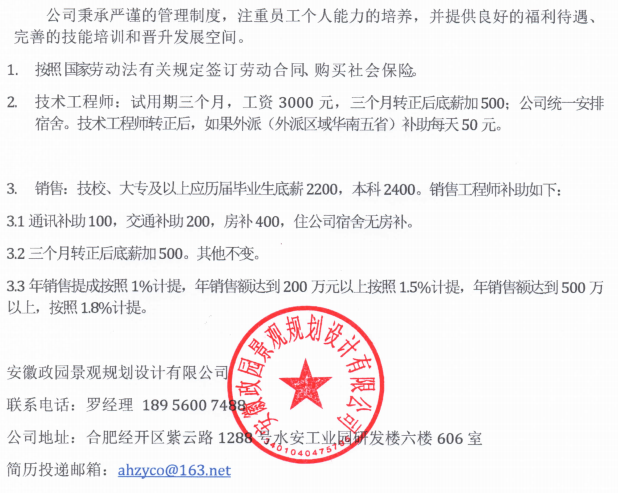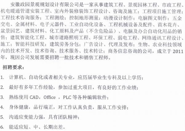 安徽政园景观规划设计有限公司招聘简章