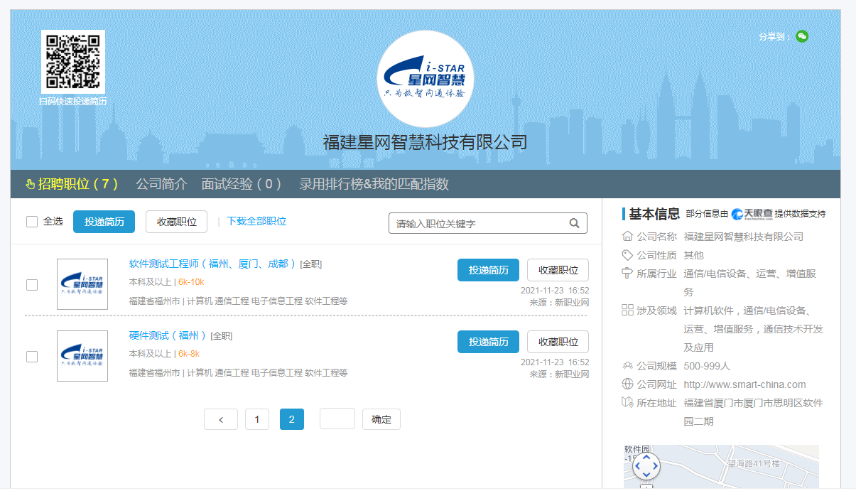 福建星网智慧科技有限公司,是福建星网锐捷(股票代码:002396)旗下面向智慧通讯业务的核心单元,拥有3大研发中心,分别位于福州、厦门、成都,研发人员占比超过41%。星网智慧凭借音视频采集、编解码算法、传输、通信协议等核心技术优势,融合大数据、5G、AI等前沿技术,以系统平台方案、硬件设计、软件研发等全流程一体化交付,形成以融合通信、智能连接、AIoT、军民融合等领域为核心的新竞争优势,是覆盖融合通信应用产业链上下游的技术驱动型企业。